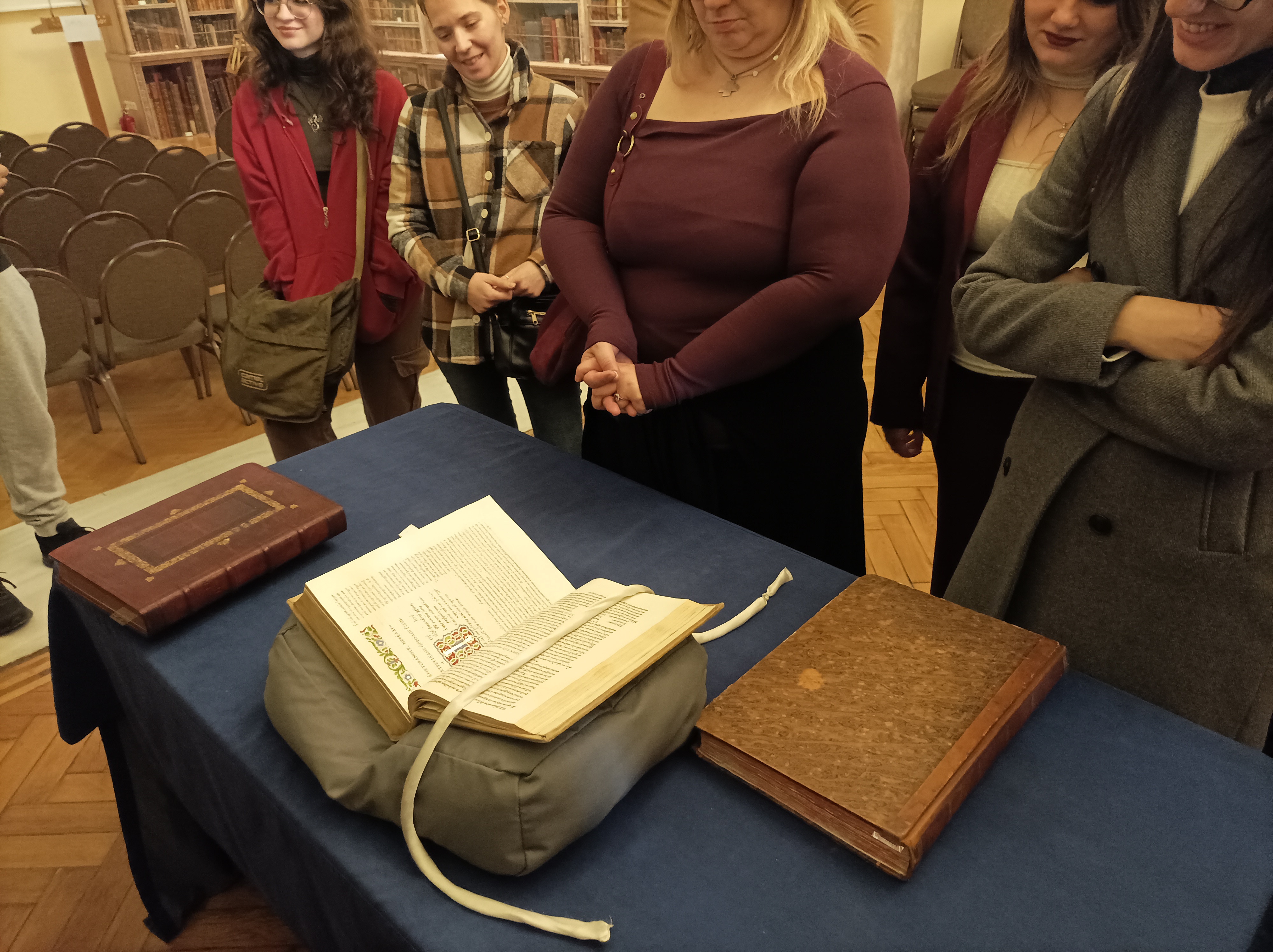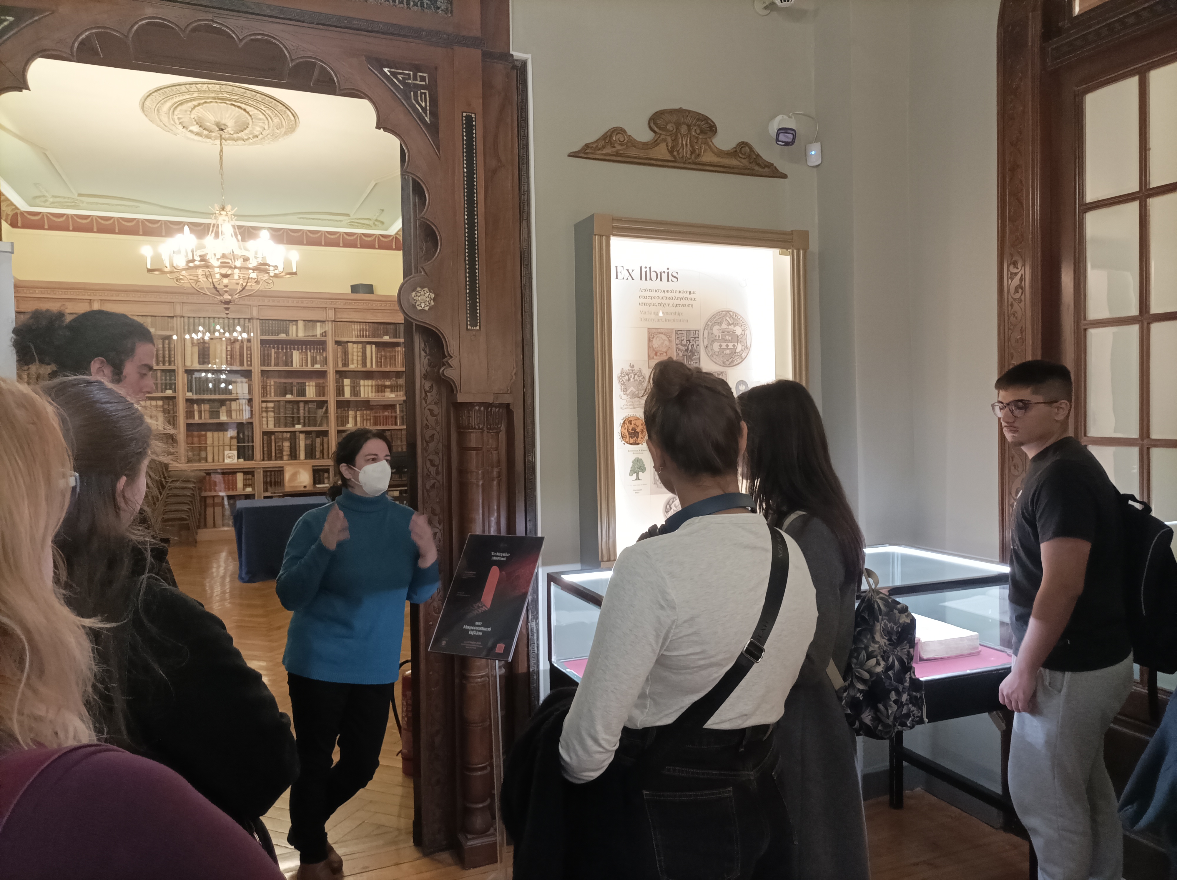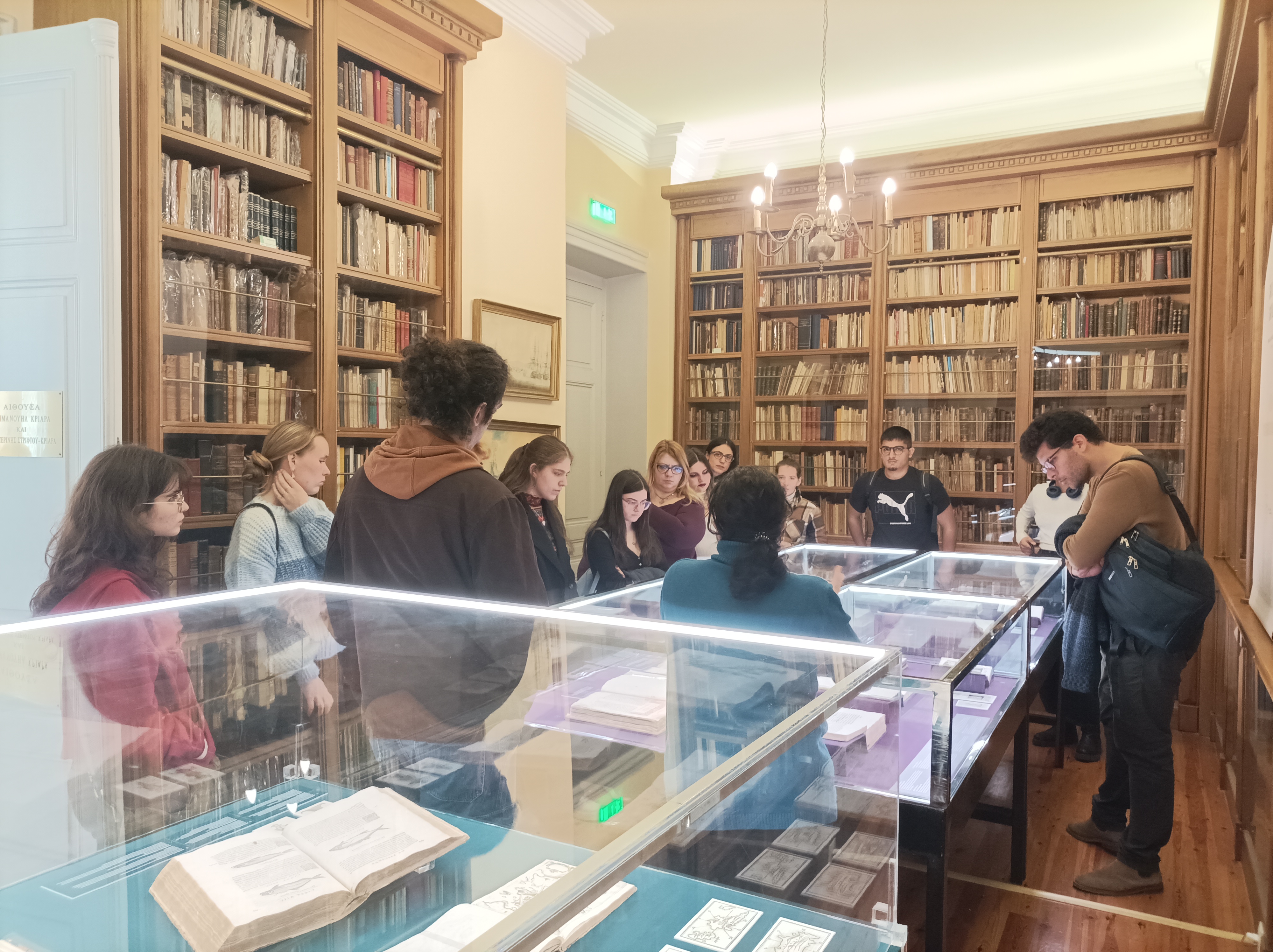 Στις 2 Δεκεμβρίου 2025, επισκέφτηκαν την Ιστορική Βιβλιοθήκη φοιτητές του τμήματος Θεατρικών Σπουδών του Πανεπιστημίου Αθηνών. Η επίσκεψη πραγματοποιήθηκε στο πλαίσιο του μαθήματος για την ιστορία του βιβλίου από την καθηγήτρια Άννα Καρακατσούλη, η οποία συνόδευσε την ομάδα. Οι φοιτητές ξεναγήθηκαν στην περιοδική έκθεση «30 χρόνια, 30 βιβλία: Μικρά, μεγάλα, πολύτιμα, σπάνια», λαμβάνοντας έτσι μια ζωντανή εικόνα για την εξέλιξη της ευρωπαϊκής τυπογραφίας και ιδιαίτερα του ελληνικού βιβλίου, χάρη στα επιλεγμένα τεκμήρια από τις συλλογές της Ιστορικής Βιβλιοθήκης.
