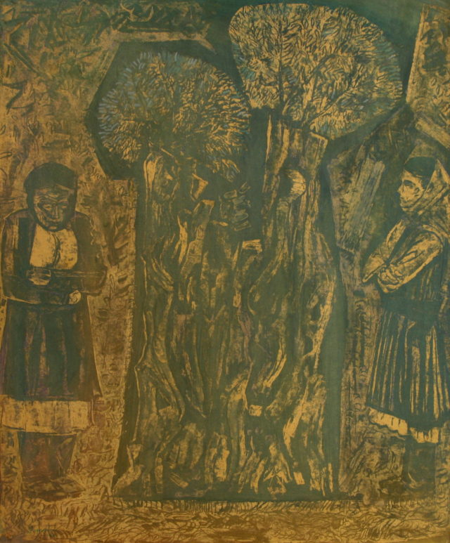 An artist with intense social and political concerns, he captured in his work the city of Athens during the Nazis’ occupation, the Resistance and the Guerrilla, constituting one of the most important direct historical testimonies of the time. His constant source of inspiration was the Greek rural, working and island life. He experimented with engraving, perfecting a new technique, which he called “etched painting”.