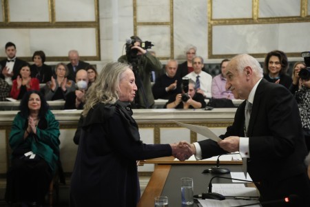 The Award was presented by the President of the Academy of Athens, Mr. Michalis Tiverios, to the Director of Academic Affairs of the Foundation, Mrs. Kali Kyparissi.