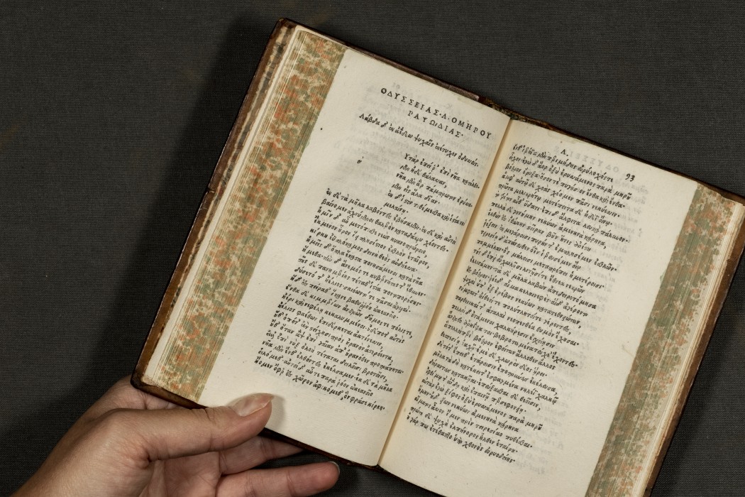 Η Οδύσσεια του Ομήρου, σε έκδοση από τους κληρονόμους του Άλδου Μανούτιου, στο περίφημο μικρό σχήμα που καθιέρωσε το τυπογραφείο (Βενετία, 1517).