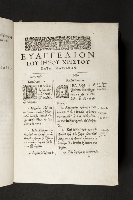 Η πρώτη νεοελληνική απόδοση της Καινής Διαθήκης από τον Μάξιμο Καλλιπολίτη, με προτροπή του Πατριάρχη Κωνσταντινουπόλεως Κύριλλου Λούκαρη (Γενεύη, 1638).